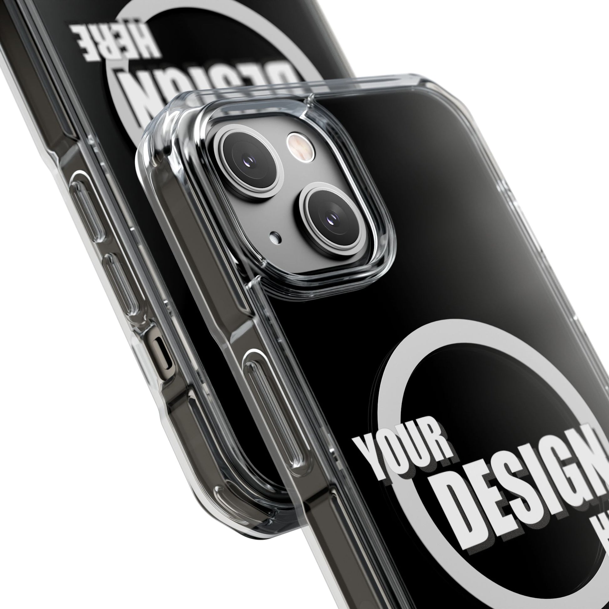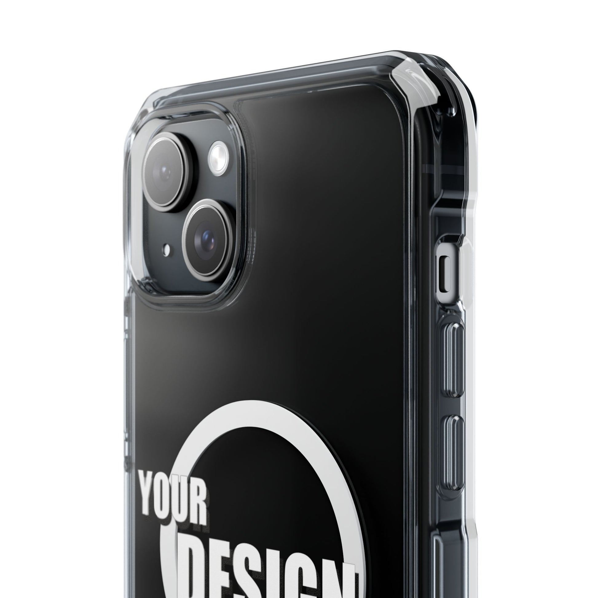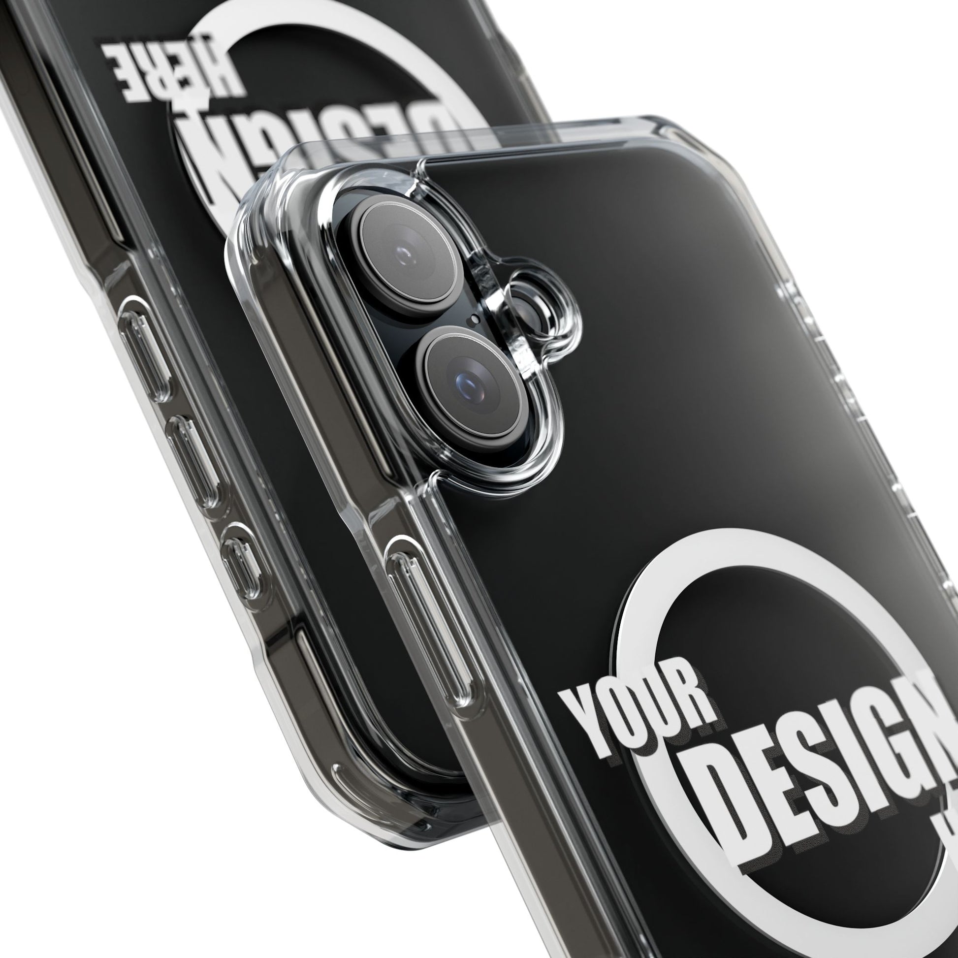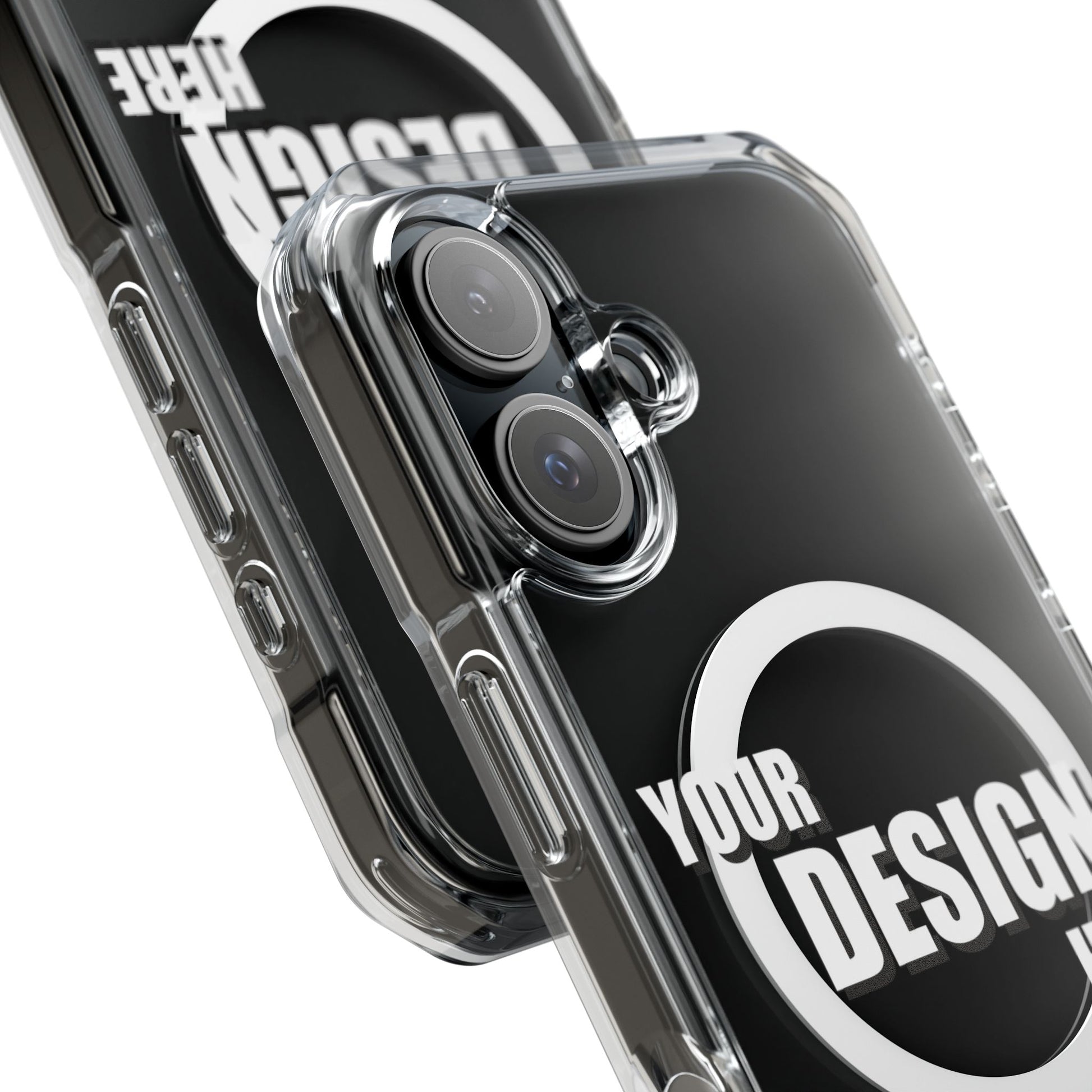 A slim, crystal-clear phone case that keeps your device visible while adding practical protection and modern functionality. The transparent polycarbonate back and TPU sides showcase your phone or custom artwork while an embedded magnetic module aligns with MagSafe® accessories for easy charging and mounting. Reinforced, air-cushioned bumper corners absorb shocks from drops without adding bulk, and precision cutouts let you attach straps or charms. Printed elements stay bright and true with advanced printing methods that pop against the clear shell. This case feels light in hand, slips into pockets easily, and gives everyday peace of mind while keeping your phone looking like you.