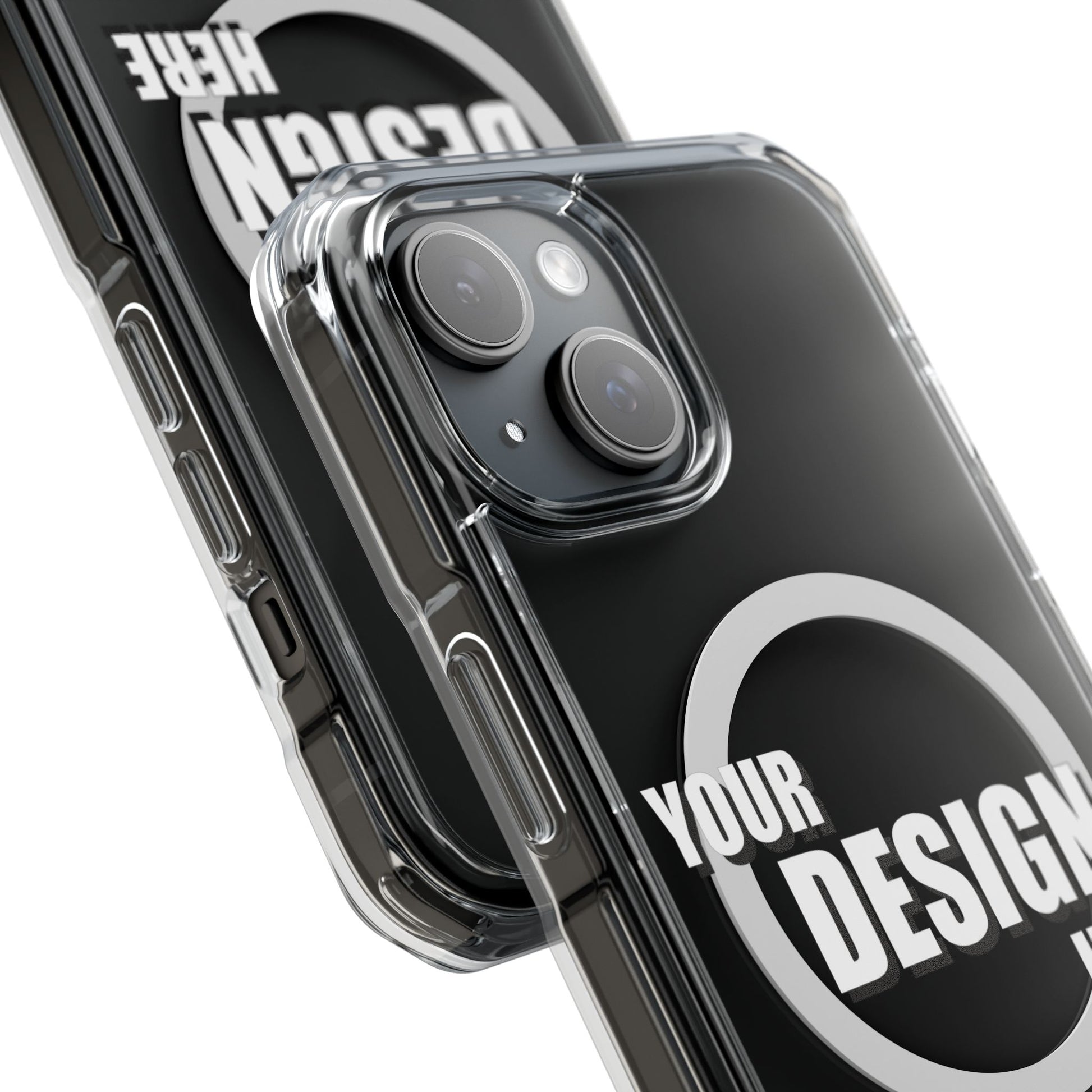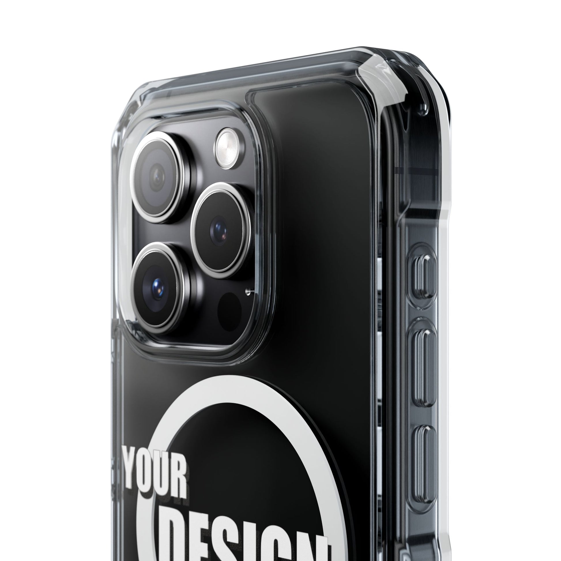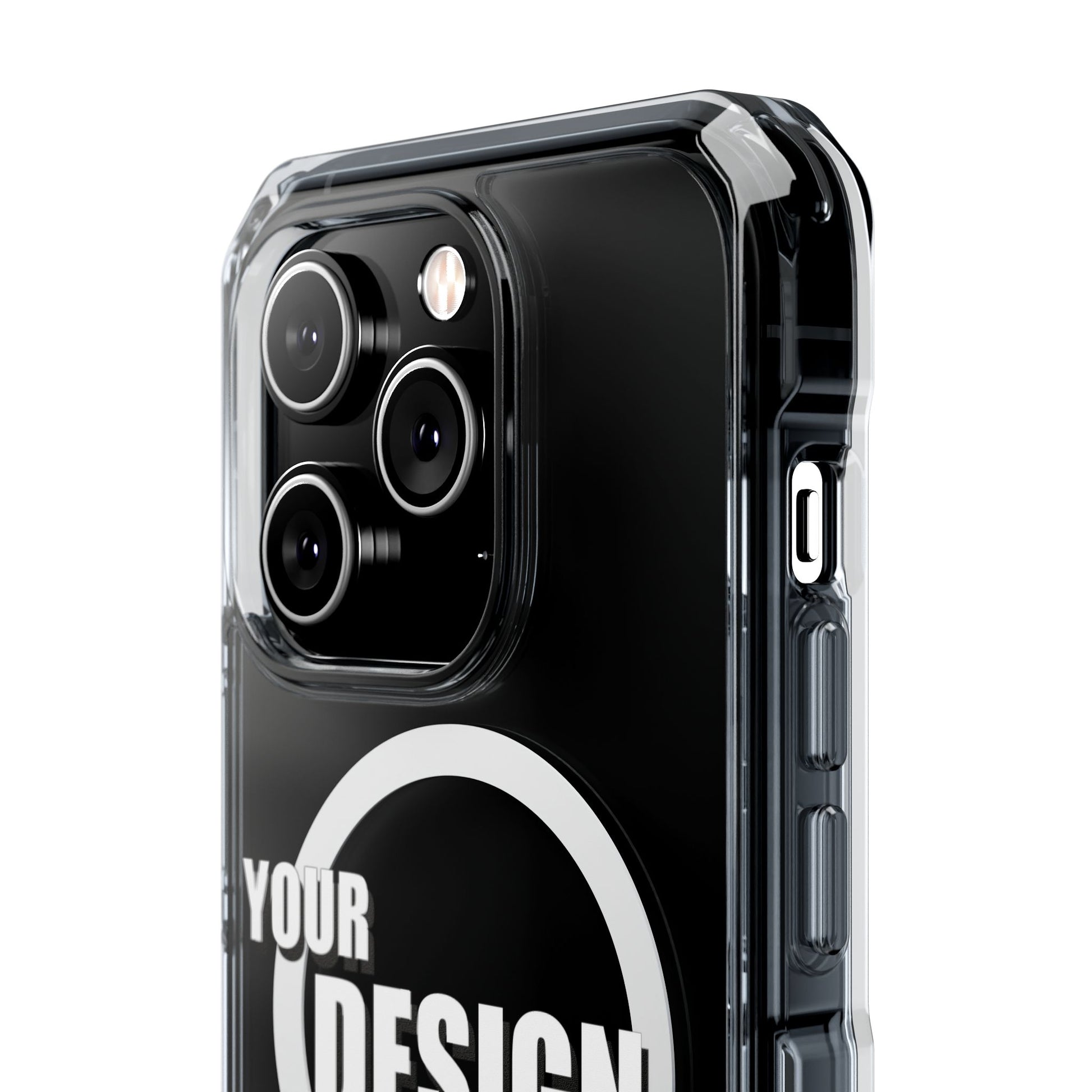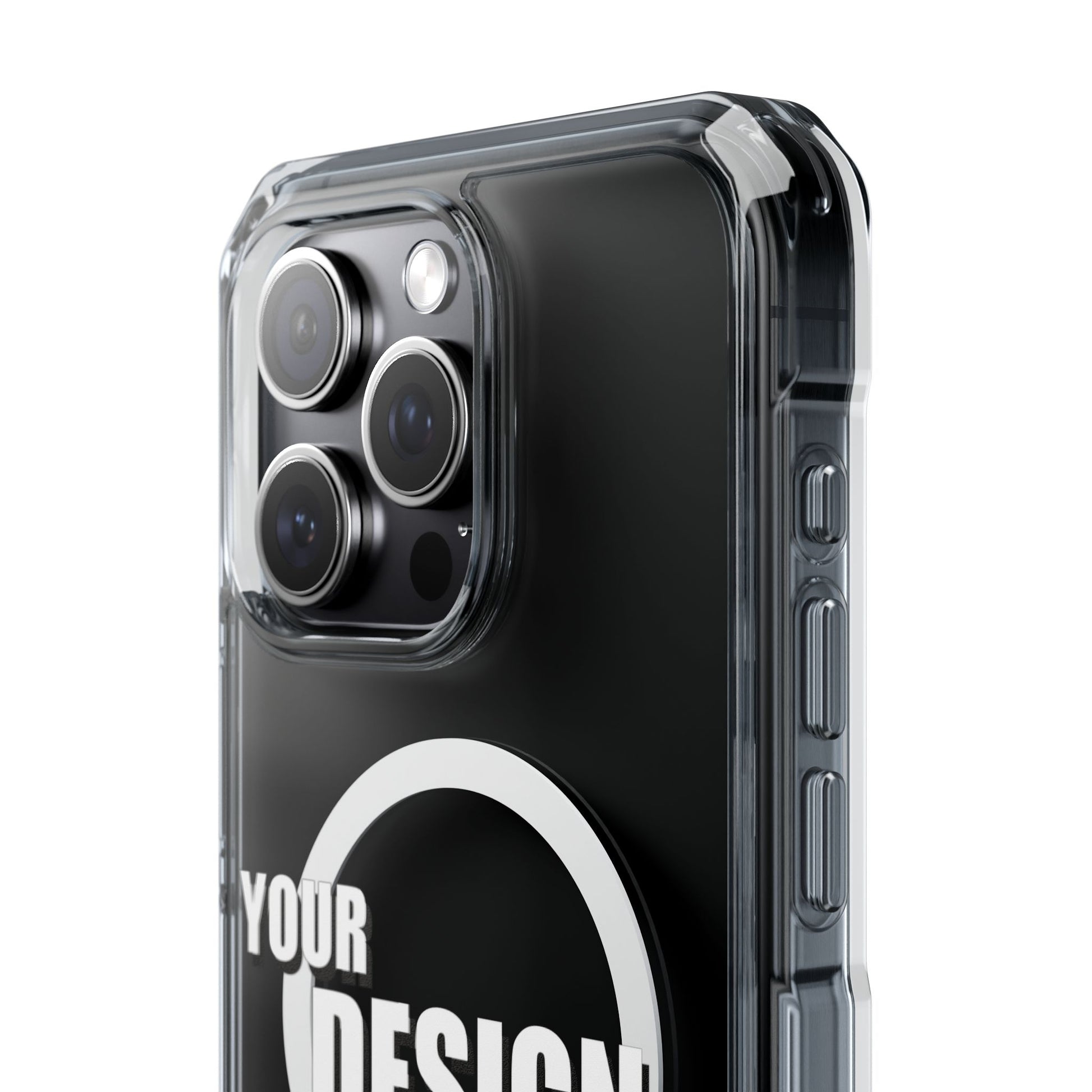A slim, crystal-clear phone case that keeps your device visible while adding practical protection and modern functionality. The transparent polycarbonate back and TPU sides showcase your phone or custom artwork while an embedded magnetic module aligns with MagSafe® accessories for easy charging and mounting. Reinforced, air-cushioned bumper corners absorb shocks from drops without adding bulk, and precision cutouts let you attach straps or charms. Printed elements stay bright and true with advanced printing methods that pop against the clear shell. This case feels light in hand, slips into pockets easily, and gives everyday peace of mind while keeping your phone looking like you.
